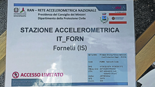 A seguito della collaborazione tra il Dipartimento della Protezione civile nazionale e la Protezione civile comunale, dopo un’attenta valutazione della pericolosità sismica dell’area, il Comune di Fornelli è stato inserito nella Rete accelerometrica nazionale (RAN).