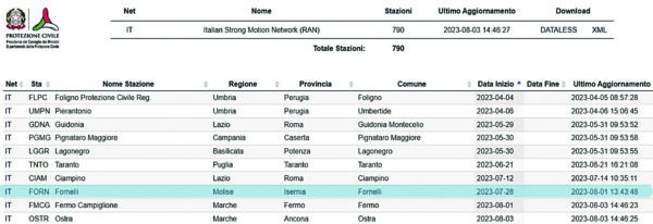 Dai primi di agosto, il Comune offre questo servizio di pubblica utilità per scopi di Protezione civile in termini di prevenzione del rischio sismico e di ricerca scientifica, oltre al monitoraggio sismico del comune stesso. Infatti, presso i sotterranei dell’auditorium è stata installata una stazione accelerometrica che inserisce ufficialmente il Comune di Fornelli nella Rete accelerometrica nazionale del Dipartimento.