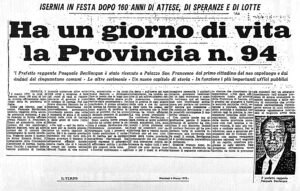 Il 3 marzo del 1970 la Provincia di Isernia nacque come nuovo punto di riferimento istituzionale al servizio del territorio e dei cittadini. A 55 anni di distanza, le istituzioni celebrano questo importante traguardo, con la consapevolezza delle difficili sfide da affrontare, vista anche la richiesta di referendum avanzata da oltre 5mila cittadini che chiedono la riannessione del territorio pentro all’Abruzzo.