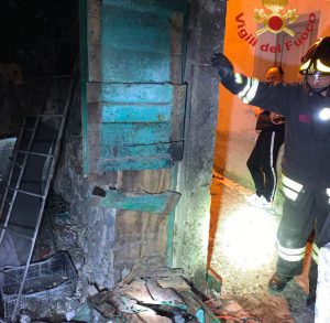 Una volta giunti all’interno del deposito hanno rinvenuto i resti di una bombola di gpl già esplosa e altre bombole, sempre di gpl, presenti nel locale. I caschi rossi hanno che la forte onda di urto provocata dallo scoppio della bombola aveva in parte divelto le porte di ingresso e provocato piccoli crolli di elementi strutturali all’interno della struttura. L’immediato intervento dei Vigili del Fuoco ha permesso di limitari i danni. I caschi rossi hanno provveduto a mettere in sicurezza i locali e hanno spento l’incendio che aveva in parte già distrutto i materiali custoditi all’interno del deposito.