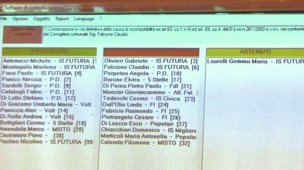 La sintesi del pomeriggio in aula è quasi identica a quella del 10 agosto scorso: dalla minoranza la considerazione che il Consiglio può anche non votare la incompatibilità. Se Falcione è consigliere, è perché i cittadini lo hanno votato. E come ribadisce il consigliere Pietrangelo, la vicenda è conseguente ad una giustizia farraginosa visto che il