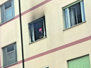 Sono divampate all’improvviso, all’interno dell’appartamento di via Molise in cui vive l’anziano signore, le fiamme che – in pochi minuti – hanno divorato parte dell’immobile, fino a fuoriuscire dalla finestra lasciando un chiaro segno di bruciatura e di fumo sul muro della casa che lateralmente affaccia sulla strada.