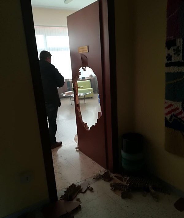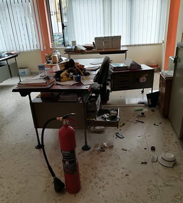 I vandali hanno distrutto tutto ciò che hanno incontrato sul loro cammino. Computer, monitor, vasi, arazzi, vetrinette per l’esposizione di oggetti.