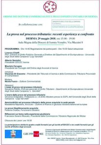 ‘La prova del processo tributario: recenti esperienze a confronto’. Questo il tema scelto per l’incontro formativo che il prossimo 29 maggio, dalle ore 15 alle 19, sarà ospitato nell’aula magna della diocesi di Isernia-Venafro, in via Mazzini. L’iniziativa è promossa dall’Ordine dei commercialisti e degli esperti contabili in collaborazione l’Università degli Studi della Campania ‘Luigi Vanvitelli’.