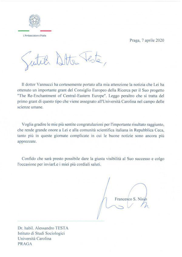 Cosa farà Alessandro con questa somma? «Potrò fondare un team di ricerca che dirigerò personalmente e che sarà formato da altri quattro ricercatori internazionali, affiliati al mio dipartimento di Scienze Sociali presso l’Università Carolina di Praga» spiega orgoglioso e soddisfatto Testa. D’altronde, centrare un traguardo così ambizioso in una delle più antiche e prestigiose Università d’Europa centrale non è roba da tutti i giorni.
