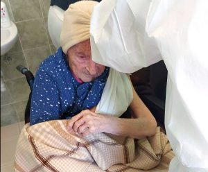 d’animo: lo scoramento, le difficoltà , il contagio che ha colpito tutti compresa lei, non hanno mai scalfito quella determinazione che traspare già dalla sua voce. Sempre allegra ma ferma, dalla quale avverti persino l’accenno di un sorriso. Quella stessa forza che trasmette a quelli che ha sempre chiamato ‘gli angeli custodi’, il personale che