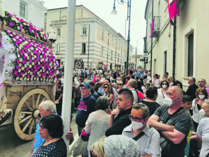 Un colpo d’occhio straordinario, quello vissuto ieri a Larino, giorno più importante del trittico dedicato al patrono San Pardo. La pandemia sembra davvero alle spalle, soprattutto a livello psicologico. L’edizione 2022 è quella della rinascita, sotto ogni profilo. L’ha sottolineato anche il governatore Donato Toma, ammaliato dall’incantevole “Carrese dei fiori”. «A Larino, in occasione della Solennità di San Pardo, sono tornati a sfilare i carri infiorati trainati da buoi e pecore, dopo due anni consecutivi di stop forzato imposto dall’emergenza pandemica. Uno dei più belli e suggestivi beni immateriali del territorio, intorno al quale si è raccolta la comunità larinese con grande partecipazione. Ogni