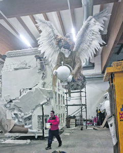 Sono gli ultimi giorni di lavorazione quelli che raccontano meglio l’anima del Carnevale di Larino. Nel backstage, tra colla, ferro, carta e vernice, prendono forma mondi complessi. Qui non si costruiscono solo carri: si modellano visioni, si difende l’arte come spazio di libertà, si immaginano futuri possibili, si raccontano paure e speranze collettive. Ogni dettaglio è discusso, ogni movimento studiato, ogni colore scelto per colpire, emozionare, far riflettere. La cartapesta diventa linguaggio, la strada palcoscenico.