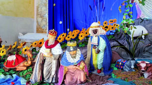 Don Nico, il Parroco, avvalendosi della partecipazione delle persone anziane della comunità, ha dato vita ad un presepe già di per se attraente, addirittura commovente, per la versatilità con cui esprime un insolito significato intrinseco recante la spinta e l’auspicio di una possibile Pace Universale; quella serenità alla quale noi tutti aspiriamo e di cui abbiamo bisogno. Dire che il presepe è stato realizzato attraverso straordinari lavori all’uncinetto è riduttivo, è rappresentarlo in modo banale, che non rende il dovuto merito al risultato ottenuto già dal punto di vista solo scenografico. Si rimane incantati, si ritorna fanciulli ritrovando la capacità di stupirsi dinanzi alla rappresentazione di un paesaggio, di personaggi che lo animano,