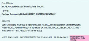 dal direttore generale dell’azienda sanitaria regionale del Molise, Oreste Florenzano. La nomina della dottoressa Giuliano era datata 23 marzo scorso. La vicenda interna al reparto di Rianimazione e Anestesia del San Timoteo è alquanto complessa. Intanto, da ormai diversi mesi, nel 2022, si garantiscono solo urgenze indifferibili, a causa del progressivo depauperamento di risorse mediche disponibili, tra dimissioni e pensionamenti. L’attuale numero non permette lo svolgimento di interventi programmati. Attualmente, sono 5 i rianimatori, al di là di Germele, un numero che al di là di consentire solo urgenze indifferibili in sala operatoria, con l’attività programmata ormai al palo da diverse settimane, davvero rende insostenibile il prosieguo della mission nel reparto. C’è chi fa da quasi due mesi senza sosta i fine settimana, c’è chi fa molti turni di notte ogni 7 giorni. Insomma, una coperta cortissima, a cui va trovato rimedio. Germele era stato sospeso sempre per motivi disciplinari dall’esercizio medico ospedaliero nel periodo compreso tra il 5 al 12 febbraio scorso. Il cosiddetto “bubbone” era esploso nello scorso autunno, con le telecamere della Tgr che documentavano il mancato utilizzo delle mascherine in corsia. In merito alla vicenda Germele entrarono in azione anche i Carabinieri del Nas.