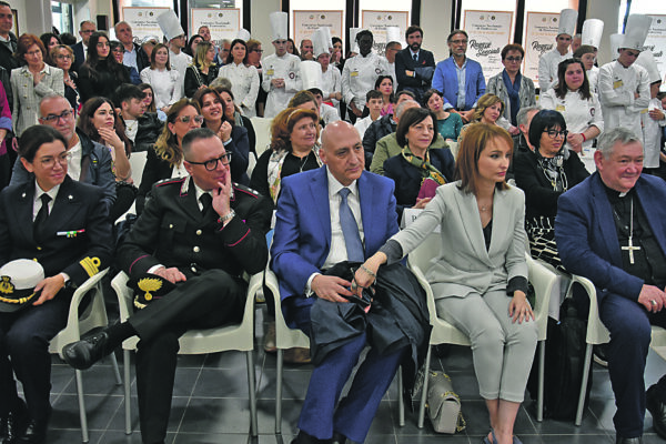 culminare nella premiazione spettacolare nella palestra, dove è stata protagonista la Ministra per la Disabilità, Alessandra Locatelli, tornata in Molise a distanza di 10 giorni dalla precedente visita. Accolta con un mazzo di fiori, ha abbracciato i ragazzi che l’aspettavano, accompagnata dalla dirigente scolastica Maricetta Chimisso e al kingmaker della rassegna, l’ambasciatore del gusto doc Maurizio Santilli, con cui la Locatelli non ha lesinato un abbraccio fraterno. Proprio prima di entrare nella scuola, per assistere all’ultimo del tandem in gara (poi finito sul podio, al secondo posto), la Chimisso ha pronunciato una frase dall’alto valore simbolico, rivolgendosi alla Ministra: «Stamani è fiorito il cactus». Un’atmosfera vincente quella si respirava in via Foce dell’Angelo, a cui hanno preso parte tante autorità. Numerose le autorità presenti, parlamentari, come Costanzo Della Porta, europarlamentare come Massimo Casanova, il sindaco e presidente della Provincia Francesco Roberti, i consiglieri comunali Nico Balice e Michele Marone, la direttrice dell’Usr Annapaola Sabatini, il consigliere regionale Vincenzo Niro col sottosegretario Roberto Di Baggio, alcuni sindaci, come quelli di Palata Maria Di Lena e Trivento, Pasquale Corallo, la prefetta di Campobasso Michela Lattarulo, il vescovo Gianfranco De Luca, solo per citarne alcuni. Una menzione d’obbligo per la presentatrice, la collega Barbara Fino, sempre gioviale e cordiale nella sua mansione. Emozioni vere, come ha rappresentato la stessa Ministra Locatelli sul suo profilo social ufficiale: «È stata un’emozione partecipare alla seconda edizione del “Concorso Nazionale di Pasticceria – Ragazzi Speciali degli Alberghieri d’Italia” al “Federico di Svevia” di Termoli. Una bellissima manifestazione che ha visto impegnati più di 70 ragazzi provenienti da tutte le scuole d’Italia che hanno partecipato in coppie e hanno elaborato meravigliosi dolci. L’emozione più grande è stata quella di vedere come i ragazzi con fragilità hanno saputo collaborare con il proprio compagno, trovare l’intesa e rafforzarsi a vicenda ottenendo fantastici risultati. Grazie alla Preside, a tutti gli insegnanti, in particolare a quelli di sostegno e ai collaboratori dell’istituto, ma grazie