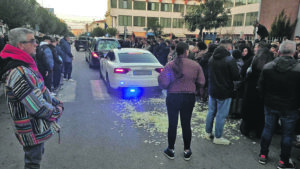 coloro che hanno voluto tributare l’ultimo saluto a Flavio. All’interno delle mura consacrate uno spillo non sarebbe caduto e l’intera scuola media Maria Brigida ha voluto essere presente, con dirigente, docenti, personale Ata e alunni, naturalmente, pronti a ricordare nel loro cuore il “Flavietto” che ha insegnato loro a sorridere. L’auspicio è che le condizioni di papà Riccardo presto trovino la via dello scioglimento della prognosi, perché la famiglia ne ha bisogno, assolutamente, sia come conforto morale che materiale. Per intanto, viste le condizioni di difficoltà in cui sono piombati, proprio durante le esequie di ieri don Benito Giorgetta, il parroco che le ha officiate, ha lanciato l’appello per una colletta a sostegno di madre e sorella di Flavio. Il feretro del 13enne è partito in corteo dalla casa funeraria Bavota di via dei Roveri intorno alle 14.45, per giungere intorno alle 15 in corso Fratelli Brigida, dove sin dal mattino erano stati anche diffusi cartelli che chiedevano di lasciare libera la sosta negli stalli prospicienti alla parrocchia. Così è stato, a onor del vero e anche la Polizia municipale ha prestato la propria opera, chiudendo il traffico all’arrivo e all’uscita della bara dalla chiesa. Tantissime, come dicevamo le persone che sono accorse a San Timoteo, mentre all’esterno petali bianchi di rose sono state disseminate per terra e la bara bianca ha fatto un ingresso caratterizzato da un dolore compostissimo da parte dei familiari, ma diremmo dell’intera folla che ha gremito ogni angolo dell’edificio di culto. Le parole di don Benito Giorgetta sono state piete scolpite nell’immaginario collettivo: