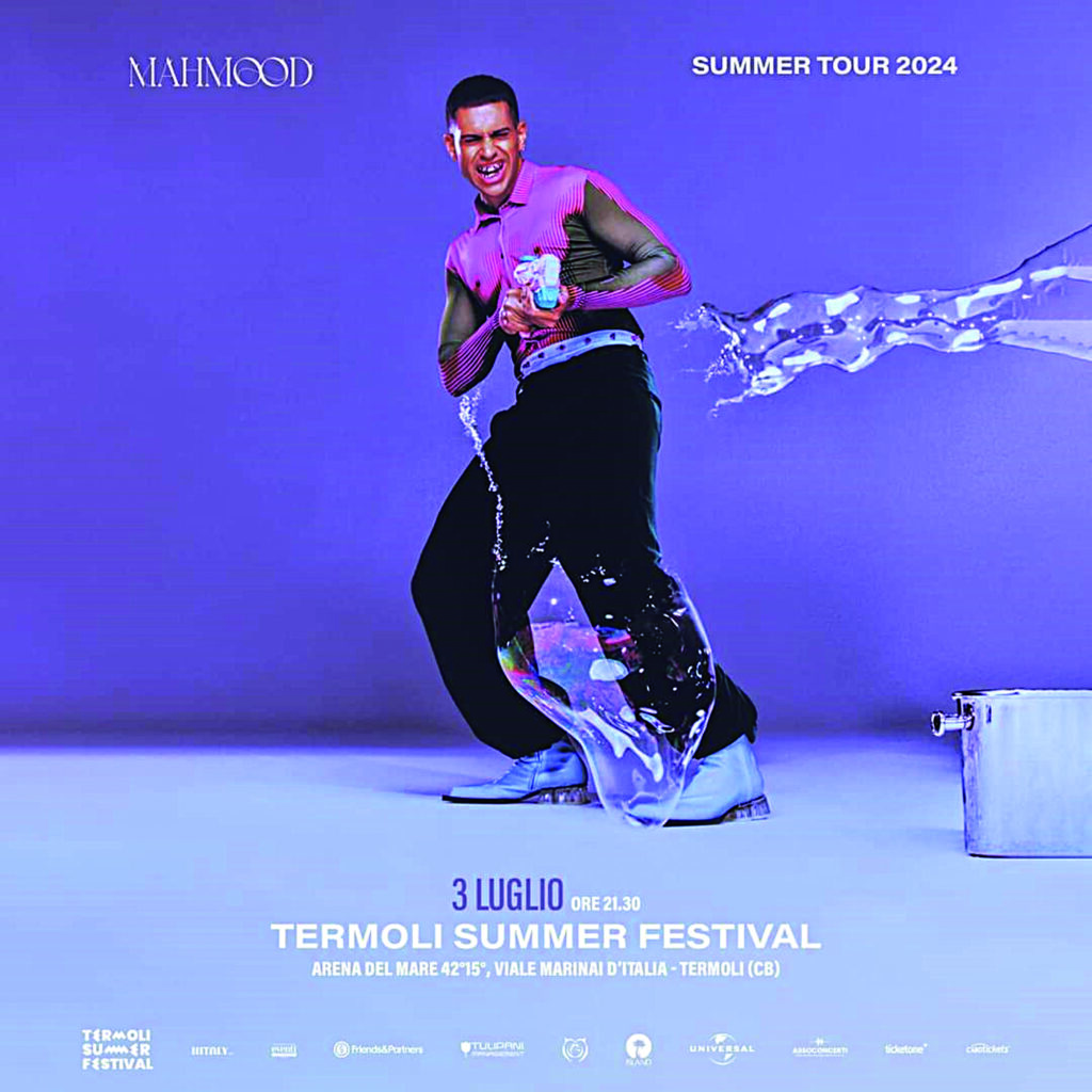 Si preannuncia un’estate da sballo a Termoli. Il Termoli Summer Festival proporrà anche Mahmood. Dopo i Pooh dell’8 giugno e Achille Lauro il 29 giugno, terzo vip al Summer Festival di Termoli, col due volte vincitore del Festival di Sanremo. La data è quella del 3 luglio, all’Arena del mare di Rio Vivo (tra porto turistico e istituto zooprofilattico). Di nuovo alla conquista dell’Europa, Mahmood prosegue il suo European Tour – 17 date nei club di 10 Paesi, prodotte da Friends & Partners – che ha registrato il tutto esaurito nelle date di Lussemburgo, Londra, Parigi, Zurigo, Ginevra, Colonia, Amsterdam, Bruxelles, Stoccarda, Berlino e nei prossimi appuntamenti di Barcellona e Pontevedra, oltre ai due show al Fabrique di Milano, previsti per il 17 e 18 maggio. Partita il 4 aprile dal Rockhal di Lussemburgo, la tournée sottolinea come, ancora una volta, Mahmood abbia fatto breccia nel cuore dei fan internazionali, oltre all’affezionatissimo pubblico di italiani all’estero. Accompagnato dalla sua fidata band – che vede Francesco Fugazza alla chitarra, Marcello Grilli alla tastiera e Elia Pastori alla batteria – e dalle coriste Arya Del Gado e Debora Cesti, Mahmood regala un live con una scaletta in cui vengono presentati per la prima volta i brani del nuovo album “Nei letti degli altri”: dalle canzoni più intime come Cocktail d’amore, Nel tuo mare e la commovente Stella cadente, fino alle più irriverenti neve sulle Jordan e Personale, in cui l’artista – immerso da giochi di luce che ricordano l’acqua del mare – si lascia andare a balli sensuali assieme alle coriste. Non mancano però anche i successi meno recenti, che con un tuffo nel passato ci regalano nuovi arrangiamenti di Inuyasha, Brividi, Rapide oltre a due medley d’eccezione – il primo con Dorado, Proibito, Talata e Klan, il secondo con Barrio, Kobra e Remo – in cui è impossibile rimanere fermi, con le loro basi elettroniche e i bassi che spettinano. Mahmood alterna momenti in cui si scatena e il palco si accende di luci colorate e flash che si muovono con lui, ad altri in cui è solo un fascio di luce e fargli da cornice, risaltando la sua presenza e contribuendo così a trasformare l’atmosfera della venue, ora intima e raccolta; immancabili momenti di interazioni con i fan, con scambi di parole, regali e ritornelli in cui la loro voce diventa protagonista.