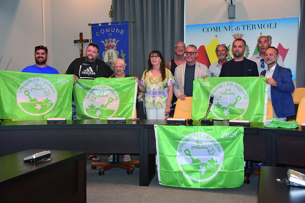 Unica località molisana, su 155 centri balneari riconosciuti con presenza di spiaggia con sabbia, spazio fra gli ombrelloni per giocare, acqua che non diventi subito alta in modo che possano andare in sicurezza in acqua, presenza degli assistenti di spiaggia, attrezzature dedicate ai bambini, e opportunità di divertimento per i genitori (negozi, ristoranti, bar, strutture sportive). Consegnati ieri mattina, in sala consiliare, i vessilli della Bandiera Verde agli operatori balneari, in merito, per la Bandiera Verde: «Per la qualità delle acque e la possibilità di balneazione ci siamo riferiti sempre alle strutture istituzionali e pubbliche italiane: le ordinanze dei sindaci e le rilevazioni delle Arpa regionali, che sono le strutture preposte a tali controlli. L’analisi delle scelte effettuate in anni dai pediatri dimostra una linearità e concordanza di giudizio infatti sono state sempre privilegiate le località più animate. È opportuno che i bambini, fin dalla nascita, ricevano stimolazioni acustiche, sonore, di nuovi volti, di nuove persone, di nuove voci, perciò anche della confusione che per i bambini e gli adolescenti è importate perché fornisce stimolazioni indispensabili per lo sviluppo del sistema nervoso. Se il genitore lo gradisce può andare, nelle spiagge più isolate, ma solo fino a che il bambino ha meno di sei anni, perché fino a tale età i bambini amano giocare soprattutto con i genitori. L’assegnazione delle Bandiere verdi ha una valenza scientifica e deriva da un’indagine condotta fra i pediatri italiani. L’indagine è svolta in regime di volontariato senza l’intervento di alcun sponsor. L’obbiettivo è quello di aiutare le famiglie a scegliere le località di mare, meta preferita per chi ha bambini, per trascorrere il periodo di vacanza nel modo più idoneo e sicuro, in base alle valutazioni dei pediatri, in modo tale che genitori e figli possano trarre i maggiori vantaggi dalla vacanza, con benefici per la salute e la crescita». Il vessillo verde non manca a Termoli dal 2012 grazie alla commissione di pediatri italiani che da allora attesta Termoli come spiaggia a dimensione di bambini. Alla cerimonia di consegna erano presenti il Sindaco Nicola Balice, il presidente del Consiglio Annibale Ciarniello, il vicesindaco e assessore al Turismo Michele Barile e l’assessore all’Ambiente Silvana Ciciola. «Da qualche anno – ha spiegato il Sindaco Nicola Balice – la programmazione è cambiata, è diventata sempre più concreta e i risultati si vedono. Da qualche anno la bandiera verde arriva insieme alla bandiera blu che abbiamo riconquistato da due anni a questa parte. Contiamo di metterci subito al lavoro per fornire servizi sempre migliori per le nostre spiagge che dal 2008 sono, a tutti gli effetti, alla portata di bambini e famiglie». Per il vicesindaco Michele Barile sono ormai diversi anni che alla costa termolese viene riconosciuto questo ambito riconoscimento. «E’ un vessillo che certifica che le nostre spiagge sono a dimensione di bambini grazie alla morfologia della nostra costa che consente un accesso al mare facilitato per i più piccoli grazie ai suoi fondali». L’assessore Barile ha fatto poi il punto sulla stagione stiva che riserva ancora tanti appuntamenti di spessore per residenti e turisti. «Abbiamo cercato in questi anni di lavorare nell’ottica della destagionalizzazione per far sì che la programmazione di eventi abbracci un periodo più ampio rispetto al periodo clou dell’estate. In questo modo sono incrementate anche le presenze turistiche, già oggi possiamo dire di aver registrato numeri importanti e una crescita notevole rispetto allo scorso anno. Lavoriamo sempre in questa direzione al fine di migliorare i servizi».