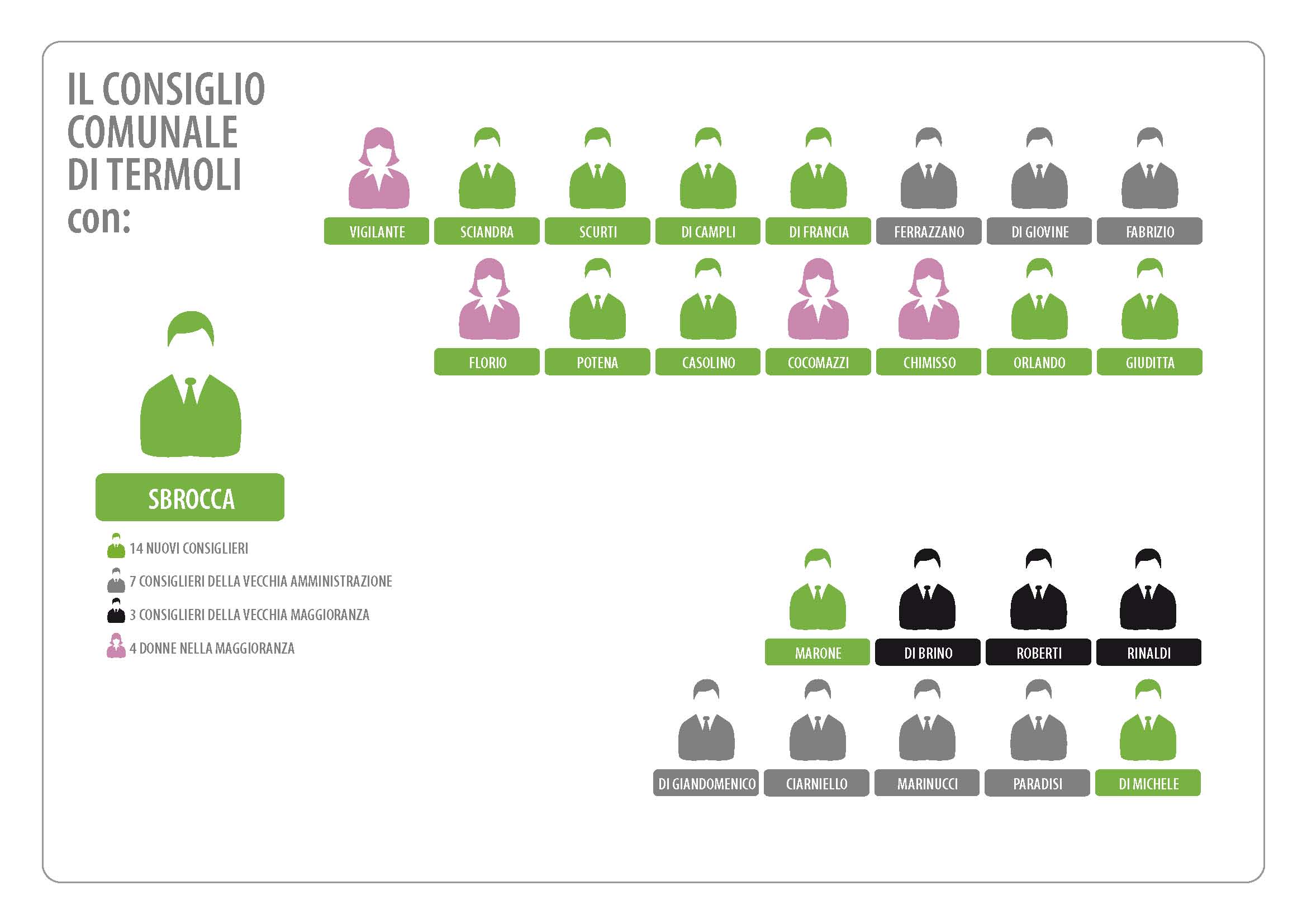 Questa in grafica, invece, la composizione del nuovo consiglio comunale.
