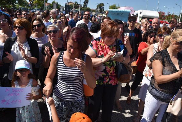 Non c’è stato il pienone atteso e sperato, ma tra 200 e 300 persone si sono assiepate nel parcheggio dell’ospedale San Timoteo, non proprio confortevole viste le auto in sosta, che si spostano e modificano anche l’assetto del presidio. Ma il segnale c’è stato e se un esponente pentastellato come Vittorio Nola, riconoscendone il successo, ha affermato di poter considerare l’idea di tornare indietro, non tutto potrebbe essere perduto sulla sorte del Punto nascita di Termoli. Alcune centinaia di persone, dalle 10, ma meno di quello che sinceramente avremmo atteso, vista la polemica furibonda sollevata sul territorio, hanno animato una iniziativa che comunque ha fatto capire a chi di dovere che Termoli deve conservare la sigla L113, quella che identifica sui documenti anagrafici e che attesta dove si è nati. Sotto un sole che si è fatto sentire, tantissime donne, ma anche uomini, bambini, amministratori di ogni livello, associazioni, comitati e gente comune, sono scesi in campo per urlare col megafono tutte le ragioni di un territorio, di una identità, delle origini. Radici che non possono essere estirpate. A testimonianza di ciò decine di cartelli realizzati nelle case, perché questa è stata una protesta varata in pochissimo tempo, davvero spontanea, nata sull’onda emozionale di ciò che ha significato apprendere della chiusura del Punto nascita. A intervenire pubblicamente il sindaco Francesco Roberti, che ha dichiarato che si vedrà assieme ai colleghi con la delegazione parlamentare nel pomeriggio, che ha dato mandato ai legali per impugnare i decreti attuativi, che chiederà un incontro al Capo dello Stato e che se dovesse servire, organizzerebbe la “Marcia su Roma”. Dalla manifestazione diurna alla fiaccolata serale, questa sarà la probabile evoluzione del sit-in di protesta che ha avuto luogo stamani sul piazzale dell’ospedale San Timoteo di Termoli. Presenti quasi tutti i sindaci del basso Molise, parlamentari, assessori, consiglieri comunali, provinciali e regionali, anche se le parole della gente comune è stata rivolta contro la politica che ha prodotto danni. Danni che si vorrebbero rimediare, da qui l’appello di Roberti a guardare e lottare per il futuro e smetterla col passato. Tra i passaggi più significativi quello del dottor Giuseppe Pranzitelli, che ha letto il testo della petizione lanciata