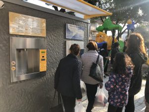 portato a termine dall’amministrazione Roberti. Al taglio del nastro oltre al Fausto Di Stefano di Ecocontrol, erano presenti gli assessori all’ambiente Rita Colaci, l’assessore al Bilancio Giuseppe Mottola e l’assessore alla Politiche Sociali Silvana Ciciola con i consiglieri Nico Balice, Vincenzo Sabella e Bruno Fraraccio. Nel nuovo parchetto oltre a scivoli e altalene si trova un’area recintata dedicata ai cani realizzata con il contributo degli studenti dell’istituto Maiorana, panchine multimediali con possibilità di ricarica per i telefonini e internet free. Ma la vera novità è una casetta nella quale è possibile conferire la plastica e l’olio esausto. In cambio, in base ai conferimenti, verranno rilasciati dei gettoni con i quali sarà possibile approvvigionarsi di acqua tramite la stessa struttura. Tra le altre cose anche la possibilità di ricarica per le bici elettriche. Un’eco isola che riesce a soddisfare diverse esigenze e per la quale è stata avanzata richiesta anche in altri quartieri della città. «E’ una eco-isola – ha spiegato Fausto Di Stefano della Ecocontrol – che da la possibilità di conferire bottiglie di plastica e oli esausti in cambio di ecopunti da utilizzare nei negozi confezionati ma anche in cambio di punti per approvvigionarsi di acqua liscia e gassata. Inoltre ci sarà un servizio di consegna con bici elettriche e ci sarà la cura e la