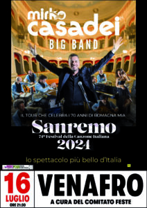della Cattedrale, con “Mirko Casadei e la sua band”, che garantisce buona musica, canzoni e tanto divertimento. Nel tardo pomeriggio dello stesso 16 luglio precederà la storica ed assai partecipata processione con la statua della Madonna del Carmine che attraverserà parte dell’abitato cittadino prima di rientrare nella chiesa della Madonna del Carmine. Da non dimenticare lo spettacolo musicale in Piazza Duomo con il concerto di “Power mix RDS”( musica anni 70, 80 e 90) alle ore 22 di lunedì 15 luglio. Tutta la kermesse si chiuderà, con i tradizionali fuochi pirotecnici nella villa comunale in programma alla mezzanotte del 16 luglio.