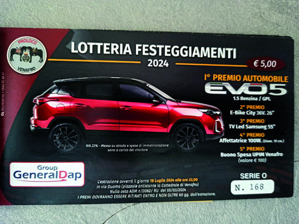 luglio a sera (ore 22) si conoscerà anche il fortunato vincitore della lotteria di San Nicandro: primo premio automobile “Evo 5 1.5. Benzina/Gpl”. Gli altri premi in palio sono: una bike-City, una tv led, una affettatrice e un buono spesa Upim Venafro del valore di 100 euro. E’ un importante appuntamento religioso e civile quello della festa della Madonna del Carmine che occupa un posto privilegiato nella tradizione popolare venafrana, una festa molto sentita che ha come, location la zona occidentale dell’abitato, esattamente dalla Chiesa dedicata alla Vergine di Monte Carmelo e sino ai rioni Porta Nova e Ciaraffella. Riti e festeggiamenti in programma secondo tradizione il 15 e 16 luglio, con anteprima il 14 luglio anche quest’anno del “Quinto Concerto alla Vergine”, serata lirico/musicale con musicisti ed interpreti campani e molisani che si esibiranno a partire dalle ore 21 sul piazzale della Cattedrale. Nella circostanza verranno presentate arie di opere liriche e i maggiori successi della canzone napoletana tradizionale. Il tutto promosso dall’associazione “I Venafrani per Venafro” in collaborazione con il “Comitato Festa” di Venafro. Questo evento è reso possibile grazie al volontario contributo economico di anonimo devoto venafrano. Dopodiché la storica e tradizionale festa del 15 e 16 luglio con banda musicale e l’attesa serata musicale del 16 luglio, sempre sul piazzale