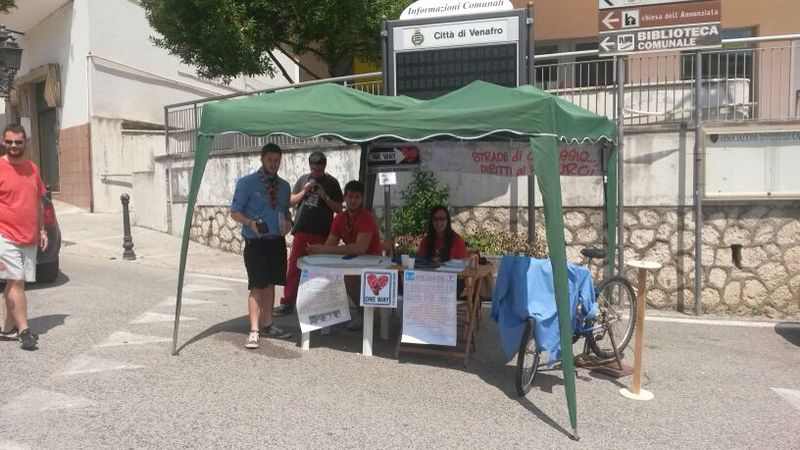 “Cambiare stile di vita”. E’ questa l’indicazione che danno gli scout del gruppo Venafro 4 quando si parla di tutela e rispetto dell’ambiente. Ieri mattina, i venti ragazzi dell’Agesci sono stati protagonisti di un gazebo in piazza Salvo d’Acquisto allestito per incontrare i cittadini e sensibilizzarli al rispetto dell’ambiente. In particolare, è stato somministrato ai tanti venafrani che si sono avvicinati allo stand un questionario/sondaggio per conoscere la loro opinione in merito ai progetti che il clan/fuoco “mea domus” sta mettendo in campo: il bike sharing. Gli scout, branca rover e scolte, sono impegnati in una iniziativa nazionale che hanno portato avanti per tutto l’anno e i cui risultati verranno illustrati dal primo al 10 agosto alla Route Nazionale in programma a San Rossore (Toscana). “La nostra azione di coraggio? Tanto per iniziare, abbiamo deciso di lasciare a casa automobili e mezzi di trasporto inquinanti e di spostarci in bicicletta per le strade del paese. Quindi ‘abbiamo guardato più lontano’ – spiegano i giovani -: stiamo proponendo al Comune di Venafro un progetto di bike sharing e la creazione di una vera rete di pista ciclabile, forse un progetto ambizioso ma, anche se ci vorrà tempo, promuoveremo la proposta costantemente”.