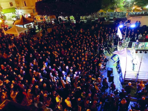 Alla fine la piazza si riempie: Porta Nuova gremita per ascoltare il “Dibba”. Primo comizio da ex parlamentare per Alessandro Di Battista che infiamma Venafro: «Il popolo deve alzare la testa. Abbiate coraggio». Uno dei grillini più amati confessa: «Anche io ero scettico all’inizio, votavo altri partiti poi sono entrato nel Movimento 5 Stelle». Ad Andrea Greco il “Dibba” consiglia: