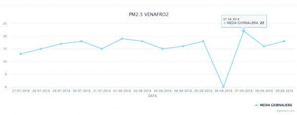 Non è confortante l’esito dell’avvio della sperimentazione dell’Arpa a Venafro per quanto concerne la misurazione del Pm2,5. Da un paio di settimane, infatti, l’Agenzia regionale per la protezione ambientale ha iniziato a monitorare quotidianamente il particolato fine presente nell’aria cittadina. In particolare, la stazione fissa di via Campania sta registrando dati al limite del livello di guardia. Anche se va sottolineato come questo primo periodo sia considerato sperimentale – gli analizzatori sono in fase di collaudo fino al 1° settembre – i primi dati parlano piuttosto chiaro, e indicano un valore medio pari a 17 µg/m3, con un picco di 22 lo scorso 7 agosto: il massimo consentito attualmente è 25, ma dal 2020 questa soglia – indicata per assicurare la «protezione della salute umana» – scenderà a 20. Dunque, in prospettiva si tratta di un valore elevato.