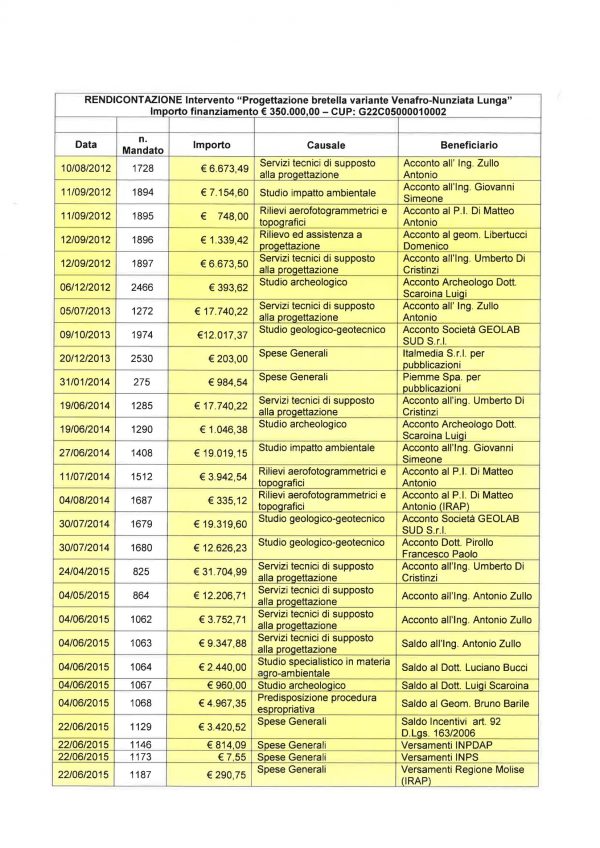 Il Comune di Venafro ha appena chiuso la pratica della bretella di Ceppagna, liquidando tutte le spese tecniche, ammontanti a 350mila euro.