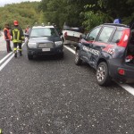 Ricostruita la dinamica dell’evento. Una Fiat Punto che stava percorrendo la strada si è ribaltata a causa della pioggia. Sul posto così sono intervenuti i Carabinieri per i rilievi. Mentre i militari erano in azione è passata sul posto una vettura che ha perso il controllo ed è finita sulla Panda dei militari dell’Arma.
