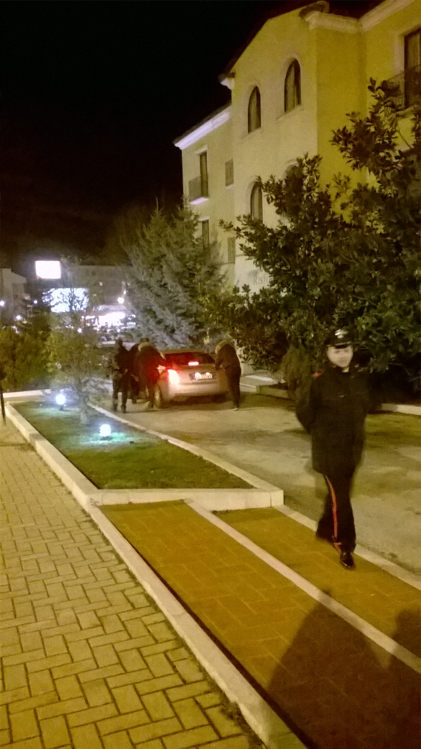 Davanti alla struttura al centro di Campobasso anche un nutrito gruppo di carabinieri della Compagnia di Campobasso. Che, compresa la difficoltà dello staff del parlamentare azzurro, ha dato una mano – nel vero senso della parola – a spingere la berlina in un luogo dove dava meno ingombro.