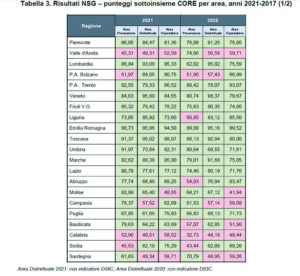 «La lettura dei risultati dell’anno 2021 – precisa il dicastero – per le tre macroaree di assistenza evidenzia, relativamente agli indicatori “Core”, ancora diverse criticità attribuibili, in parte, all’evento pandemico; analogamente a quanto previsto per il 2020, considerata l’impossibilità di procedere con una valutazione che potesse essere disgiunta dagli effetti della pandemia, è stato stabilito (Comitato Lea 26 gennaio 2023) che tutti gli indicatori del Nsg fossero calcolati a scopo informativo sull’intera annualità 2021».