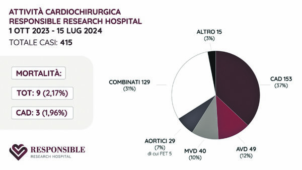 Dunque, da ottobre alla metà di questo mese sono stati eseguiti 415 interventi, entro la fine di ottobre si prevede di raggiungere circa 500 casi. Un risultato importante mai raggiunto prima che colloca il Responsible Research Hospital tra le Cardiochirurgie a volumi medio-grandi in Italia.