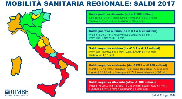 Nel 2017 il valore della mobilità sanitaria ammonta a 4.578,5 milioni di euro, importo approvato dalla Conferenza delle Regioni e delle Province autonome lo scorso 13 febbraio, previa compensazione dei saldi. Sei le Regioni che vantano crediti superiori a 200 milioni: in testa Lombardia (25,5%) ed Emilia Romagna (12,6%) che insieme contribuiscono a oltre un terzo della mobilità attiva.