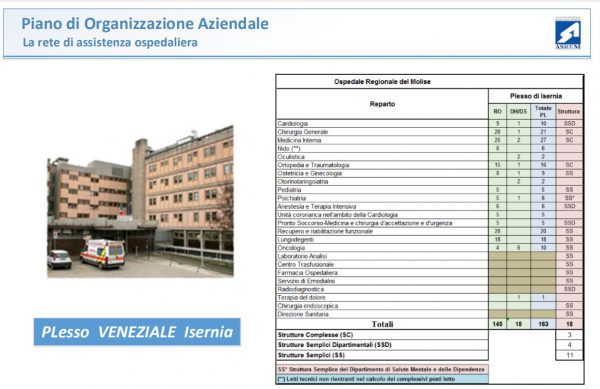 I fatti denunciati da Nola, dunque: «Mi informano che si sta elaborando una disposizione per redistribuire i posti letto presso l’ospedale Veneziale di Isernia», ha scritto a Giustini. Tra le altre cose sarebbero previsti 15 posti per lungodegenti e zero per malati oncologici.