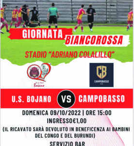 Il Campobasso accoglie con ammirazione l’iniziativa del Bojano. «In questi tempi difficili per le società di calcio rinunciare del tutto all’incasso della partita di cartello non è una scelta facile. Ammiriamo tale decisione auspicando che sia da esempio per tutte le altre piazze e siamo orgogliosi di farne parte. Vogliamo che sia una festa anche per i tanti molisani all’estero affinché possano guardarci con orgoglio. Per questo invitiamo la nostra tifoseria, nostro vanto dinanzi al mondo intero, ad accorrere numerosa a Bojano e, per una volta, ci spingiamo anche a chiedere di mostrare i nostri colori oltreoceano. Rispettiamo chi finora ha scelto di non essere presente, ma adesso bisogna rispondere a questa nuova avventura con tutto il calore che da sempre ha contraddistinto il popolo rossoblù anche in nome dell’iniziativa benefica di cui il Bojano si è fatto promotore e che sposiamo pienamente; giornata di festa deve essere e giornata di festa sia con i colori del Bojano e quelli del Campobasso in evidenza in tutto lo stadio, anche in nome della storica amicizia che ci lega».