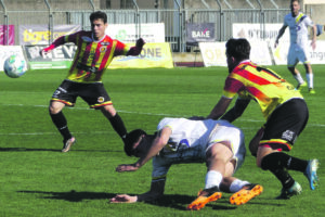 Un primo tempo che si apre bene per gli ospiti molisani vogliosi di portare a casa punti fin dalle battute iniziali. Buon piglio, manovra piacevole, e alcune conclusioni tentate verso la porta avversaria. Dopo un quarto d’ora i marchigiani accelerano in un paio di occasioni e alla seconda colpiscono con Keryota, bravo a superare il portiere Lombardo, la difesa tenta di salvare sulla linea ma non c’è nulla da fare. I giallorossi provano a rispondere con il solito Carnevale che trova la risposta di Roberto. La gara si “addormenta” nella seconda parte grazie alla bravura dei locali che si chiudono e ripartono per provare a raddoppiare. Ma si va al riposo sul punteggio di 1-0.